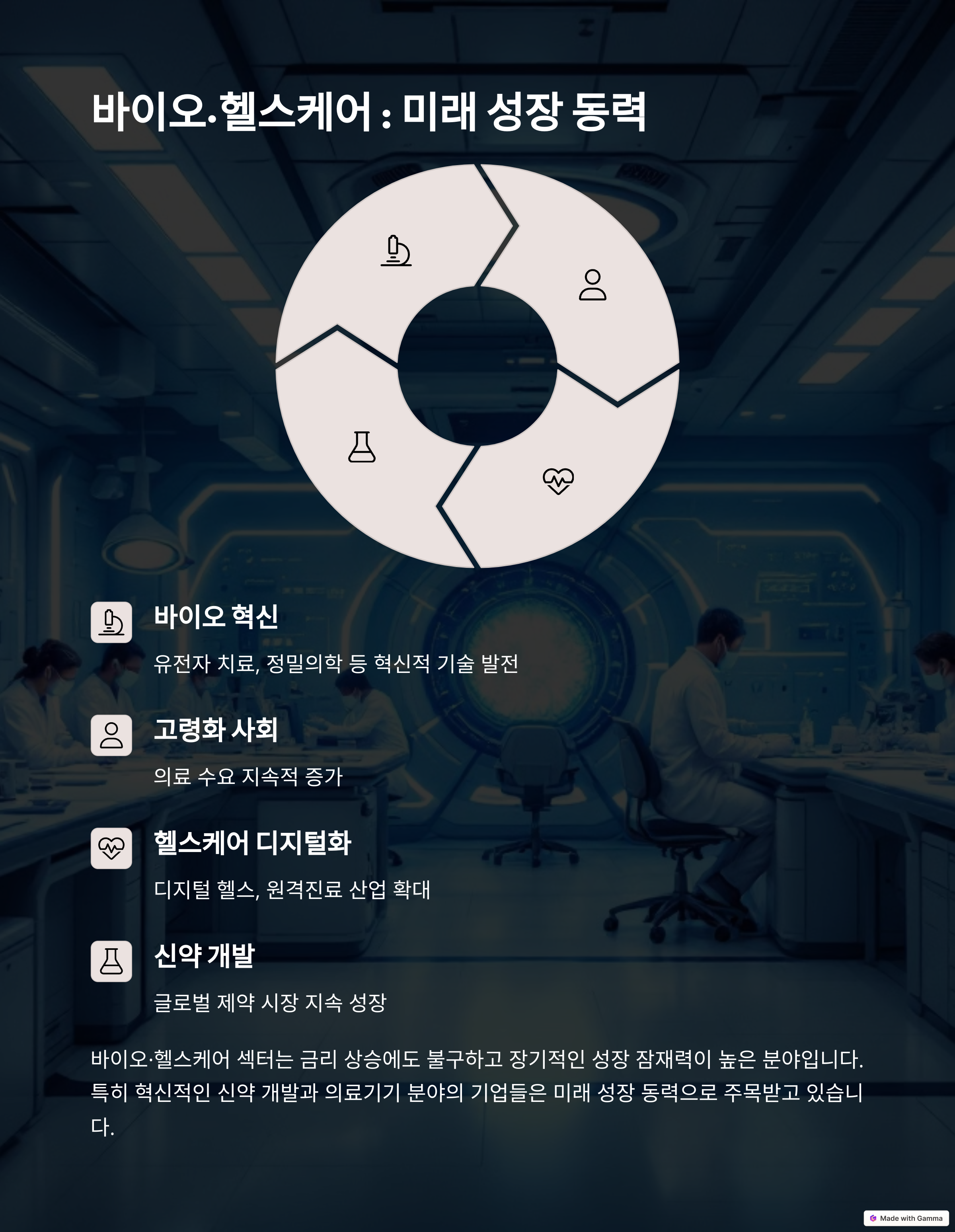 바이오·헬스케어 | 장기적 성장 기대 | 기술 발전과 고령화 영향 |