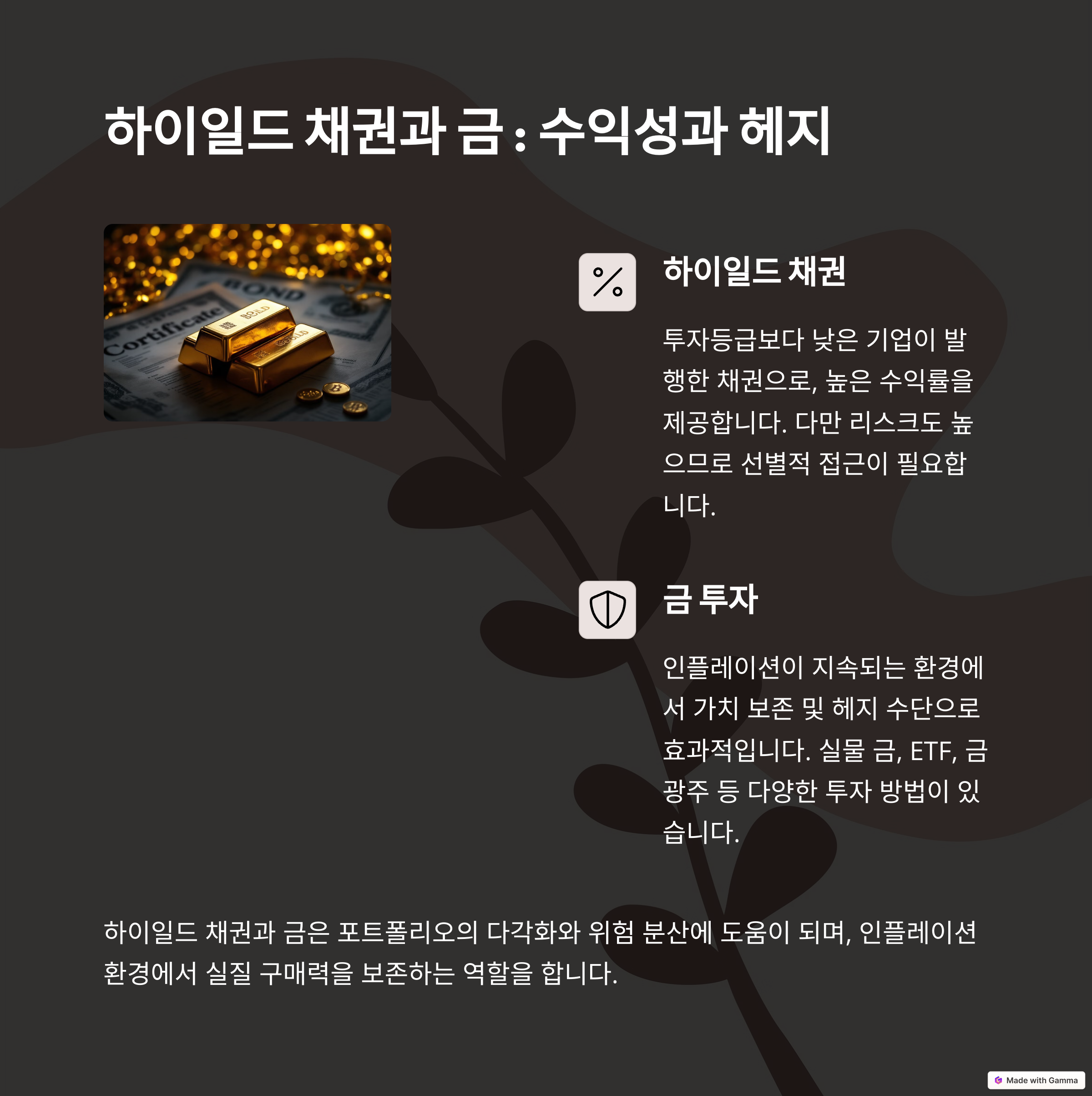 안정적인 투자 | 미국 국채, REITs, 대형 가치주 등 |